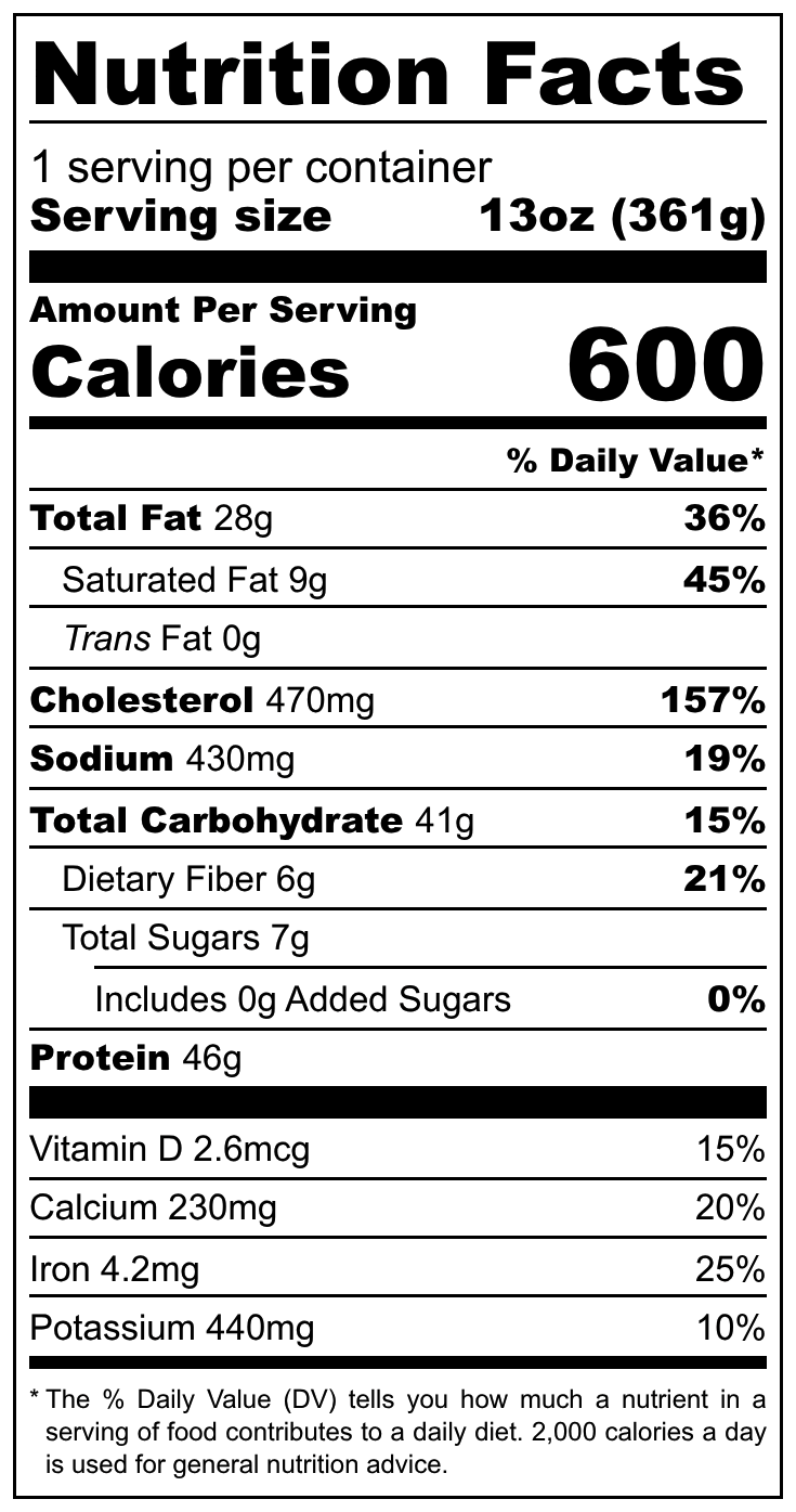 600 Cal | 46 Pro | 41 Carb | 28 Fat