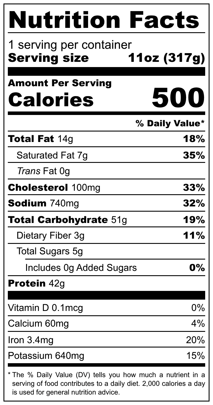 500 Cal | 42 Pro | 51 Carb | 14 Fat