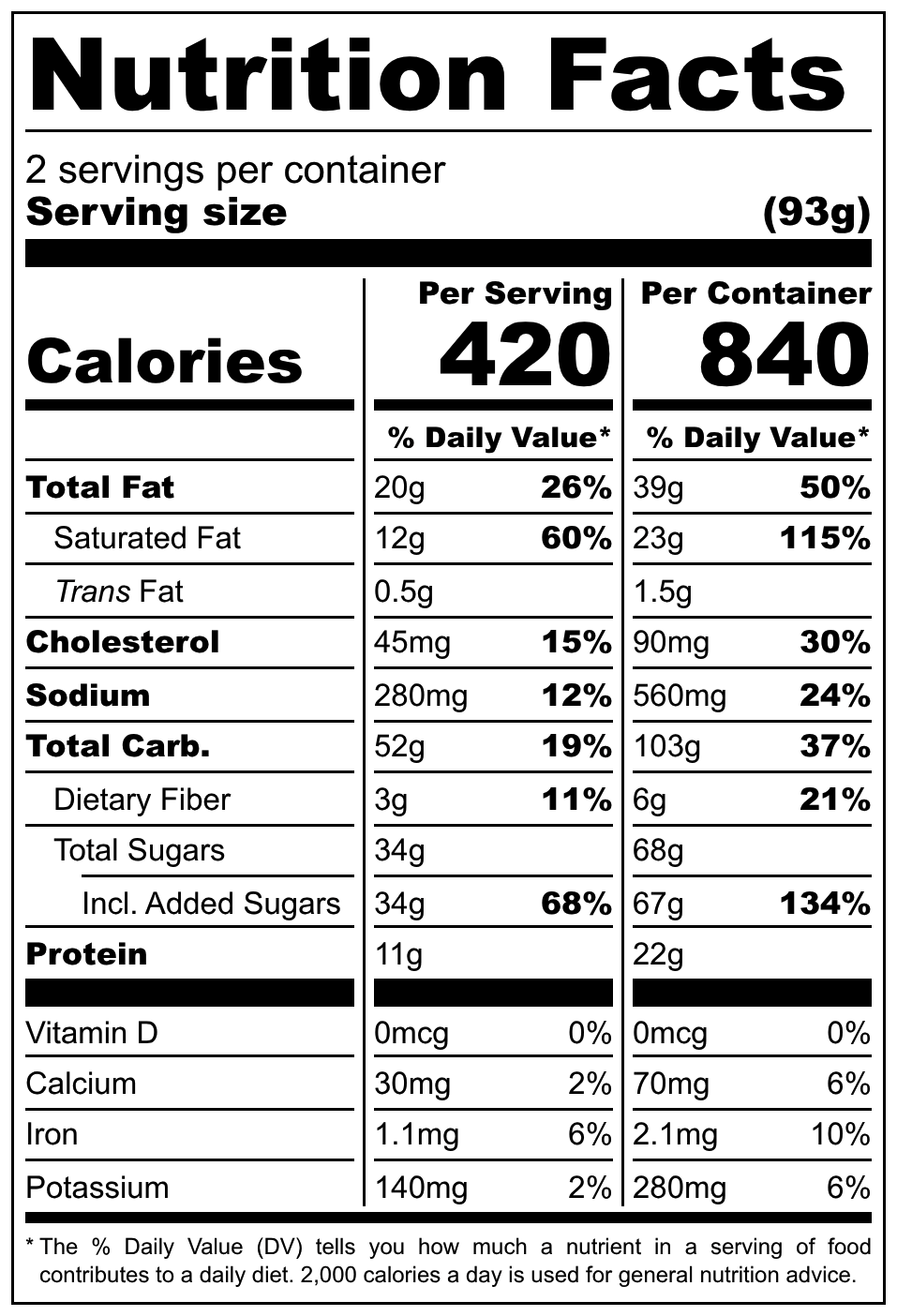 420 Cal | Pro 11g | Fat 19g | Carbs 51g